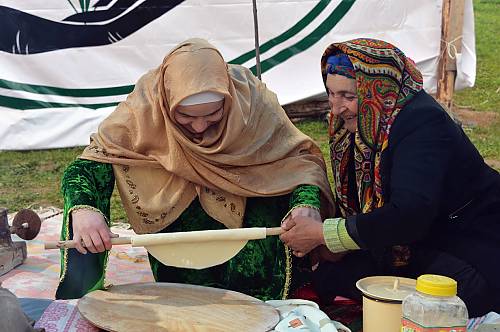 The culture of making and sharing flatbread in communities of Azerbaijan, Iran, Kazakhstan, Kyrgyzstan and Turkey carries social functions that have enabled it to continue as a widely-practised tradition. Making the bread (lavash, katyrma, jupka or yufka) involves at least three people, often family members, with each having a role in its preparation and baking. In rural areas, neighbours participate in the process together. Traditional bakeries also make the bread. It is baked using a tandyr/tanūr (an earth or stone oven in the ground), sāj (a metal plate) or kazan (a cauldron). Besides regular meals, flatbread is shared at weddings, births, funerals, various holidays and during prayers. In Azerbaijan and Iran, it is put on the bride’s shoulders or crumbled over her head to wish the couple prosperity while in Turkey it is given to the couple’s neighbours. At funerals in Kazakhstan it is believed the bread should be prepared to protect the deceased while a decision is made from God and in Kyrgyzstan sharing the bread provides a better afterlife for the deceased. The practice, transmitted by participation within families and from master to apprentice, expresses hospitality, solidarity and certain beliefs that symbolize common cultural roots reinforcing community belonging.