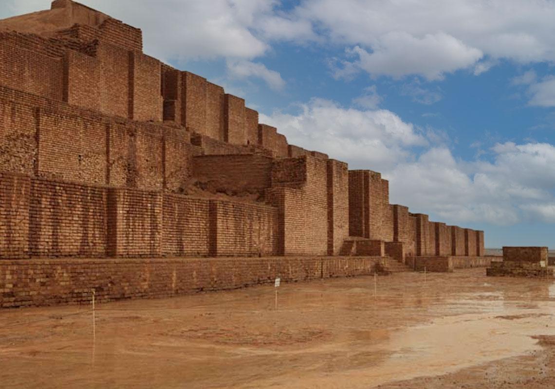 The ruins of the holy city of the Kingdom of Elam, surrounded by three huge concentric walls, are found at Tchogha Zanbil. Founded c. 1250 B.C., the city remained unfinished after it was invaded by Ashurbanipal, as shown by the thousands of unused bricks left at the site.